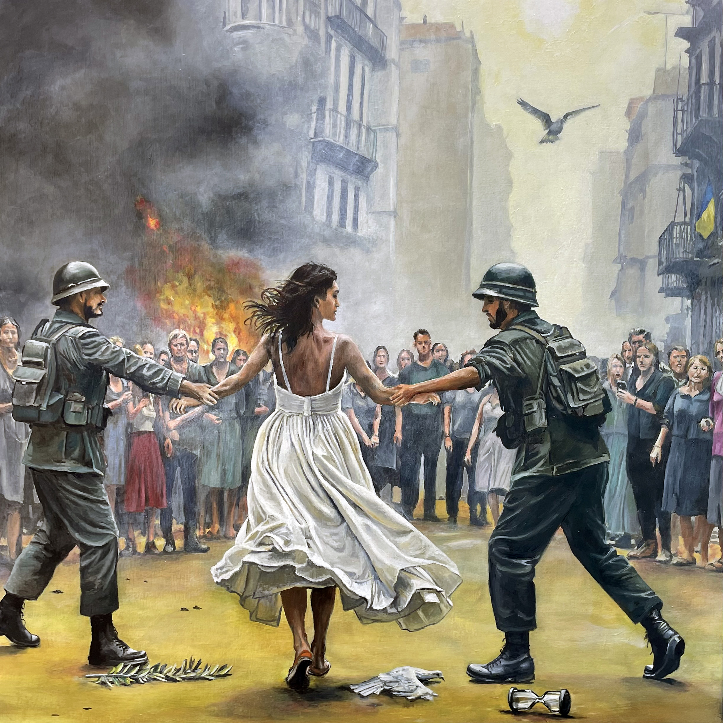 L'enlèvement de la paix transpose le mythe antique des Sabines dans le tumulte des conflits actuels. Ici, ce ne sont plus des femmes enlevées, mais la paix elle-même — saisie, profanée, disputée par deux puissances aveuglées par la conquête.