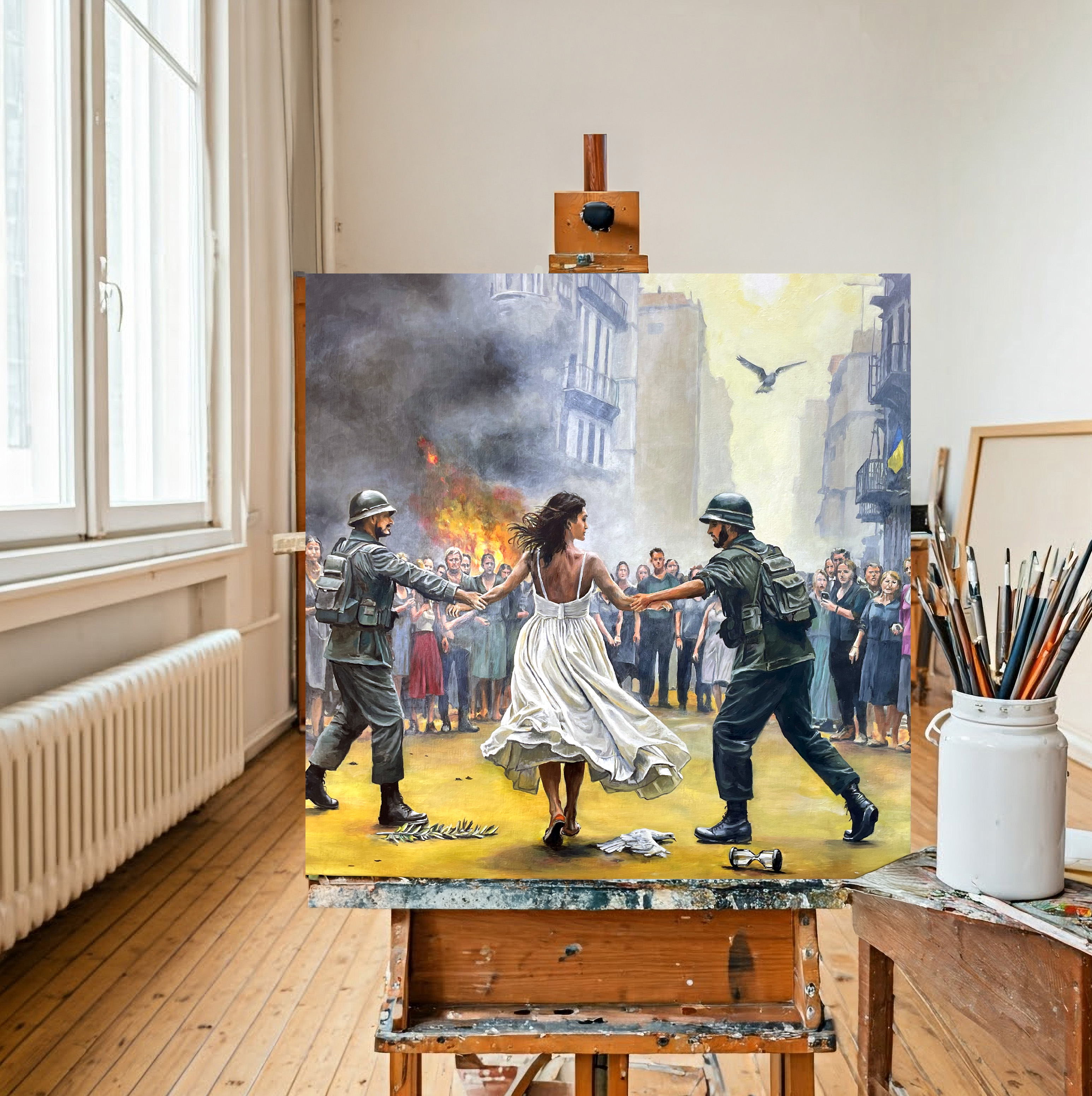 L'enlèvement de la paix transpose le mythe antique des Sabines dans le tumulte des conflits actuels. Ici, ce ne sont plus des femmes enlevées, mais la paix elle-même — saisie, profanée, disputée par deux puissances aveuglées par la conquête.